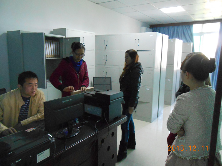 考評(píng)驗(yàn)收小組在檔案室現(xiàn)場(chǎng)逐卷檢查