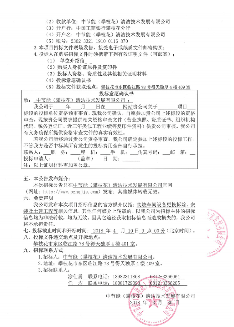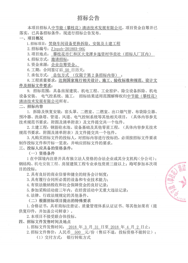 焚燒車間設(shè)備更換拆除、安裝及土建工程招標(biāo)公告